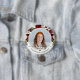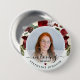 Den perfekta minnesmärkesknappen för vänner och familj att bära vid en begravning eller minnesstund med en bild av din älskade och orden "i kärleksfull minne" och deras namn. Designen har en burgunderfärgad akvarellblomma och kalligrafiskrift.