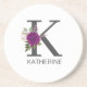 Burgunder Dahlia Blommig Alfabet Bokstav Monogram Underlägg