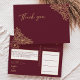 Burgunder Guld Blommig Bröllop Tacksamt Kort