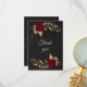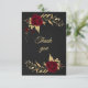 romantiska burgunder blommor och guldblad botaniskt svart tackkort.