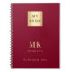 Burgunder guldmonogram initialer företag anteckningsbok