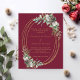 För ett höst- eller vinterbröllop. En burgunderbakgrund dekorerad med kottar, vita bär och grönska. En falsk guld oval ram. Anpassa och lägg till era namn och detaljer.