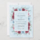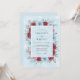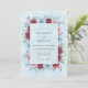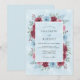 Denna design visar en rik palett av djup burgunder och mjuka dammiga blå akvarelltvättar. Frodiga rosor, ömtåliga anemoneblommor och eukalyptusblad skapar en romantisk atmosfär perfekt för en säsongsbetonad händelse. Små bär och frodiga blad ger en touch av charm till det målaraktiga blomsterarrangemanget.