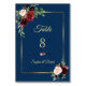 Burgunder Marinblå Blommig Guld Bröllop Bordsnummer