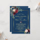 Burgunder Marinblå Blommig Guld Ram Bröllopsfest Inbjudningar