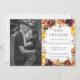 Framhäva ditt förlovningsfoto med detta boho-chica spara datum fotokort. Med en vacker akvarell burgunder, gul, bränd orange blommig och grönskande lövkrans. Personifiera det med dina detaljer enkelt och snabbt, tryck bara på anpassa-knappen för att ytterligare ändra och formatera stilen och placeringen av texten.