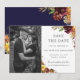 Framhäva ditt förlovningsfoto med detta boho-chica spara datum fotokort. Med en vacker akvarell burgunder, gul, bränd orange blommig och grönskande lövkrans. Personifiera det med dina detaljer enkelt och snabbt, tryck bara på anpassa-knappen för att ytterligare ändra och formatera stilen och placeringen av texten.