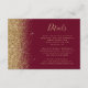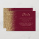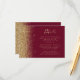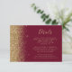 Den vänstra kanten på detta eleganta moderna bröllopsdetaljkort har en guld falsk glitterdesign. Den anpassningsbara texten kombinerar guldfärgad handskrift och kopparstick-font på en burgunderröd bakgrund. Baksidan har en matchande burgunder och guld glitterdesign.