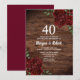 Burgunder Rubinröd Ros Rustik 40-års bröllopsdag inbjudan
