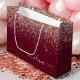 Burgunder och Rosa Guld - Rosa Gnistrande Glitter Skrift Monogram Namn Gåvpåse. Detta gör den perfekta söta 16-års födelsedag, bröllop, bröllopsdusch, årsdag, baby shower eller möhippa presentpåse för någon som älskar glamourös lyx och chic stilar.