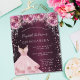 En modern, stilren och glamourös inbjudan till en Quinceañera, 15-årsfest. En burgunderfärgad falsk metallisk bakgrund med rosa falskt glitterdamm, en klänning och rosa blommor. Namnet skrivs med en modern handskriven typsnitt. Anpassa och lägg till din festinformation.