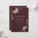 Sätt tonen för en mörkt romantisk fest med denna vinröda blomster gotiska bröllopsinbjudan. Med en rik vinröd bakgrund, mjuk guldtypografi och vintageinspirerade blommor i rosé, elfenben och djupa vinnyanser, förenar denna design elegans med stämningsfull förtrollning. Perfekt för par som planerar ett gotiskt, häxigt eller vintageinspirerat bröllop. Fullt anpassningsbar text låter dig enkelt anpassa namn, datum och detaljer. Designad för att samordna sömlöst med hela Burgundy Floral Wedding Suite för en sammanhängande look.