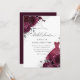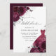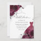 Burgunder Silver Bröllopsklänning & Blommande Rosor Bröllopsdusch Inbjudan