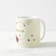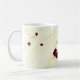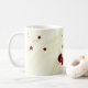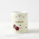 Vackra burgunderblommor & gyllene blad på marmor bakgrund kaffemug