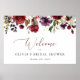 Lägg till en personlig touch till din bröllopsfest med dessa stilrena och minnesvärda festartiklar! Designen har burgunder, rosafärgade och lila akvarellblommor och grönska på vit bakgrund.