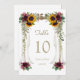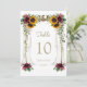 Burgunderdukade solrosor bröllopsbord nummer inbjudningar