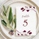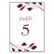 Burgunderröd lövbröllop bordsnummer