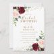 Burgunderröda blommor glitter bröllopsdusch inbjudningar