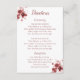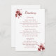 Följ med dina gäster till bröllop-platsen med det här vackra kortet för djurutrymme. Med en vit bakgrund har det övre lämnat handhörnet och grund-högerna en vattenfärgsblomma av burgundisk elegant. Texten ser ut på följande sätt: "Riktningar" centreras överst med hjälp av ett burgoment kursivt teckensnitt. Under är en mall som du använder för att infoga ceremoni och mottagningsinformation i burgundi. Anpassa det här kortet i dag!