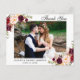 Burgundisk Blommig Bröllopsfoto Tackkort Vykort