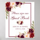 Burgundisk blomsterbröllop gästbok poster