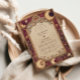 Dessa romantiska himmelska bröllopsdesign fångar nattens himlas skönhet med rika burgunder och guld nyanser. Inramad av utsirade barockdetaljer, lysande månar och skinande stjärnor, skapar den en atmosfär av vintage himmelsk elegans. Perfekt för kvällsbröllop, gotiska firanden eller par som inspireras av kosmisk romantik.