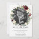 Framhäva ditt förlovningsfoto med detta boho chic spara datum fotokort. Med en vacker akvarell burgunderfärgad, elfenbensvit blomma och grönskande lövkrans. Anpassa det enkelt och snabbt med dina detaljer, tryck bara på knappen för att anpassa och omarrangera stil och placering av texten.