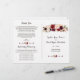 Elegant, romantisk design med vackra akvarellblommor, pilar med hjärtan och blommor som avdelare på vit bakgrund; på baksidan en kunglig burgunderbakgrund. Använd verktyget Anpassa för att lägga till din information. Du kan ändra teckensnitt och deras färger samt bakgrundsfärgen. För matchande artiklar besök min Burgundy Marsala Rosentonsätt Floral Bröllopssamling.