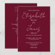 Denna burgundiska minimalistiska eleganta bröllopsinbjudan med skrivstil kan anpassas med din information i chic typografi med detaljer om din bröllopswebbplats och din QR-kod på baksidan. Designad av Thisisnotme