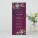 Vattenfärg blomsterelement i vackra färger, satta på en duk med graderande nyanser av burgunderrött och lila, och en matchande burgunderröd duk på baksidan. Denna design är färdig med vit kalligrafi...som framhäver brudens och brudgummens namn i elegant skrivstil.