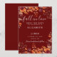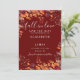 Detta rustika, eleganta höstbladiga blomsterbröllopskort i burgunderrött kan anpassas med din information i modern typografi. Designad av Thisisnotme©