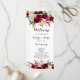 Bröllopskort i bohemisk stil med akvarellillustration av burgunderfärgade, röda och rosa peonior och rosor med fjäderaccent. Detta är perfekt för höst och vinter bröllopsinbjudan. Matchande artiklar finns också tillgängliga.