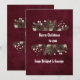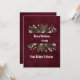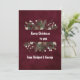Jag är glad över att ett anpassade rött burgundi minimalt skandinaviskt helgdag. Typografin är vit med olika storlekar och alternativ. Ovanpå typografin finns lite snö. Den har en typisk julklapp och krans. Bakgrunden har en röd burgundisk sammetsdesign som tittar. Du kan anpassa den med din jultext, ditt namn och dina monogram. Baksidan av inbjudan har samma design. Hobinishop