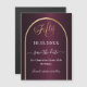 Ett magnetiskt Spara datumkort för en 50:e födelsedagsfest. En burgundisk bakgrund, dekorerad med faux guld-båge. Anpassa och lägg till ett datum och ditt namn. Texten: Femtio och Spara datumet skrivs med ett stort trendig-handskript med stil.