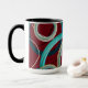 En söt som har en burgudisk bakgrund med abstrakt linjer och cirklar i olika färg och storlekar.