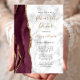 Den lämnat kant i denna elegant, den moderna inbjudan till en förnyad utfrågning i bröllop, innehåller en burgomfärgad vattenfärgad agat gräns som trimmas med faux guld glitter. Anpassadet kombinerar handskriftsskript för guld-färgad med svart tryckplåt och kursivt typsnitt på en grått- och vit marmorbakgrund. Den bakomliggande sidan har en matchande burgundi och guld-agate-design.