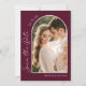 Få dina gäster i bröllop upphetsade för din speciella dag med den här moderna burgundi-2-fotot som sparar datumkortet. Det här kortet har en fantastisk utformning med boho vibes och är en perfekt för att visa två fantastiska foton av dig och din partner. Det är en garanti för att dina gäster blir upphetsade för den stora dagen. Gör ett påstående med det här unika, spara datumkortet och låt planeringen i bröllop börja!