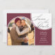 Burgundy bröllop spara datum-kort med ett modernt bågfoto bröllop på framsidan, kalligrapy för elegant och ett storlekt foto på baksidan av fullt. redo av chic och mall för namn och bröllop. Fotomallen visningar automatiskt fotot i bågformen. I min samling i Bröllop Färg finns en samordning av inbjudningar, stationär utrustning och händelsemedagar. Om du vill ha olika färg eller ytterligare mallar för matchande produkter, bör du meddela mig att du vill lägga till dem åt dig.
