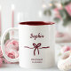 Burgundy båge brudtärna modernt skrivet namn datum Två-Tonad mugg
