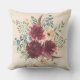 Splashy water color burgundy, peach och blue blommigt medallion, accated with Spring and löv on a outdoor tyg dekorativ kudde.
