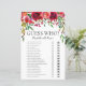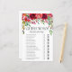Det här fina bröllopslekbladet med burgunderröda och rosa rosor Guess Who? är elegant och charmerande - perfekt för vilken trädgårds-, botanisk-, rustik-, romantisk-, blomster-, formell eller vintagebröllop som helst. Dess utsökta kombination av graciösa flerfärgade burgunderröda och rosa blommor och luftig grönska är flödande, delikat och vacker. Det här roliga och enkla spelet kommer säkert att ge massor av skratt till vilken bröllopsfest som helst. Du kommer att bli förvånad över hur många som känner till några av svaren. För att göra det här spelet till ditt eget väljer du helt enkelt Anpassa denna mall och skriver in namnen på bruden och brudgummen.