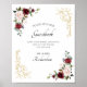 Burgundy Blommönstrat Guldpräglat Välkomstskylt Gästbokskort