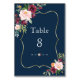 Burgundy Blommig Marinblå Guld Bröllop Bordsnummer