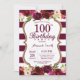 Burgundy Blommigt 100:e Födelsedagsfest inbjudan