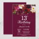Burgundy Blommigt 13:e Födelsedagsfest inbjudan