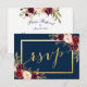 Burgundy Blommigt Blue Guld Script Bröllop OSA Kort