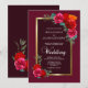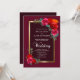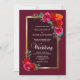 Elegant Red and rosa blommigt bröllopsinbjudan med en masala och guld gräns och burgundy insida-panel som belyser inbjudningsdetaljerna.