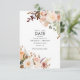 Tillkännagivandekort för Cute blommigt bröllop spara datum med burgundi, pastel, gröna blommor och populär modern typografi och layout