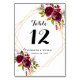 Burgundy Blommigt Geometric Bröllop Bordsnumren Bordsnummer