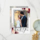 Burgundy Blommigt Grått Marble Script Photo Bröllo Tack Kort